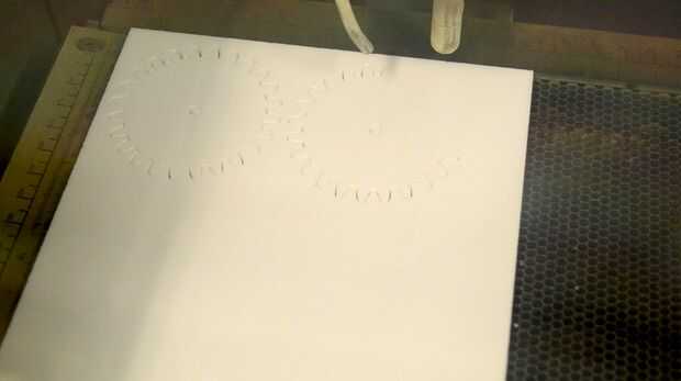 Ahora esto puede ser la parte más delicada a organizar - corte por láser. Siendo estudiantes, teníamos acceso a técnicos y equipos de cortar para nosotros. Sin embargo no permitirá esta fase! Hay muchas empresas que pueden subir los diseños en línea que corte del laser y enviarle los engranajes resultantes en el post nuevo. No necesitará comprar el acrílico a sí mismo, así que mire esto antes de comprar.