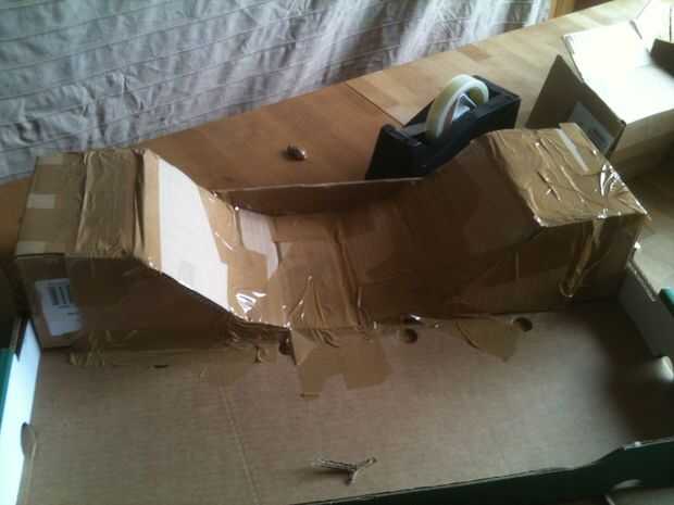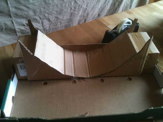 Para el montar a caballo un buen trozo fuerte de tarjeta de uso de la superficie. se arrugan como empujas en la curva, pero no importa demasiado que solucionaremos las protuberancias e hinchazones más adelante.
