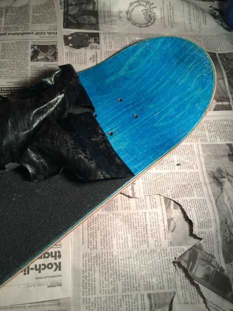 Para este proyecto, he pintado un patín usado. Primero lija y lo preparado y limpiar la cinta de agarre. Por supuesto, también se puede utilizar un tablero en blanco.Al final tiene un nuevo monopatín gráfico o si es demasiado viejo puede utilizarlo c