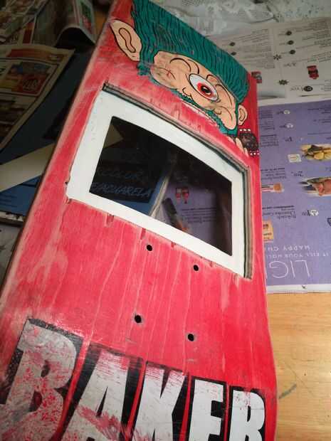 Para este proyecto, he pintado un patín usado. Primero lija y lo preparado y limpiar la cinta de agarre. Por supuesto, también se puede utilizar un tablero en blanco.Al final tiene un nuevo monopatín gráfico o si es demasiado viejo puede utilizarlo c