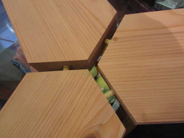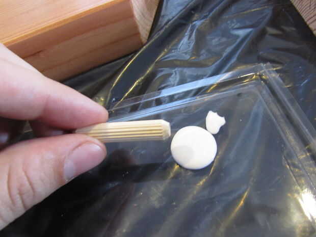Para pegar, poner un pequeño toque de pegamento para madera en ambos lados de sus tacos. A continuación Alinee la Junta correspondiente. Te tienes que pegar y empujar en todas las tres placas a la vez para la articulación interior. Una vez que has empujado todo juntos a su satisfacción, ponga la abrazadera de la correa alrededor de todo el asunto. Apriete hasta el punto de que todo es empujado juntos, pero no tan apretado que comienza a separar la articulación. Luego espere que se seque.