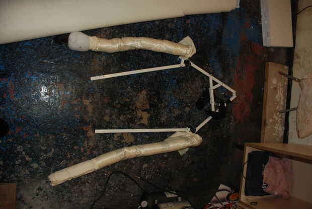 Los brazos son simplemente fibra de vidrio estacas que se han envuelto en la guata y cubierto con satén barato. Raso por un gran material para este tipo de proyecto ya que tiene baja fricción y felizmente se deslizará sobre otros materiales.