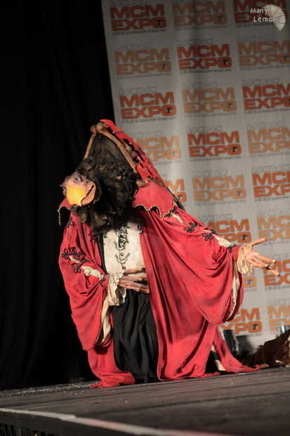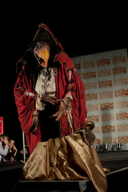 este es mi disfraz de halloween de 2009:Un Skeksis de la película de Jim Henson 1982 el cristal oscuro.Era un traje de cuerpo completo, con títeres de mano cabeza y parpadeo de ojos.Costo est.: $120Peso est.: 9,5 kgTiempo est.: 350 horas y 7 semanasP