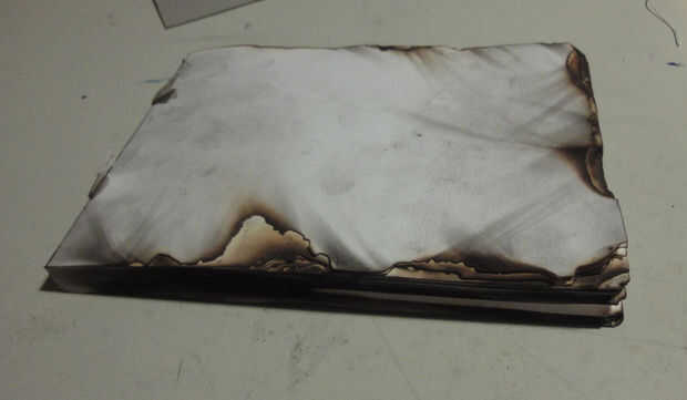 Como se puede ver el daño de fuego no extiende mucho más allá de los bordes del papel.