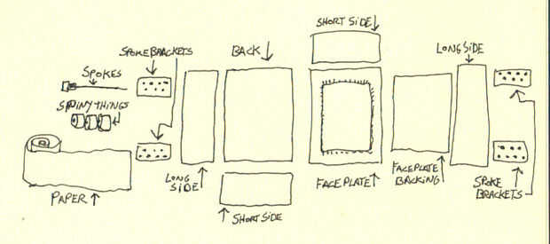 8. hilo de papel a través de ejes en la caja y entre cara y respaldo
