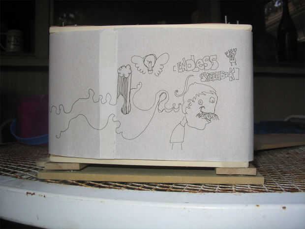 El prototipo de un sinfín de ' Sketchbook ' no es perfecto. Todavía tengo algunos problemas de fricción y puedo ver que si avanza el papel a través de un montón, podría empezar a usar un poco. Está trabajando y con el tiempo se resolverán los problemas poco en diseño y función y estoy seguro de que se añadirán muchas más funciones a este cuaderno.