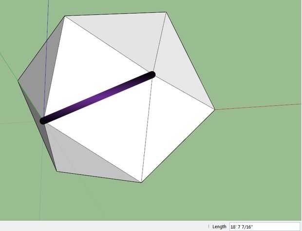 Ahora que está dado es completo, puede que sea un tamaño específico. Asegúrese de que no hay nada en el componente seleccionado y si estás en la edición de componentes, haga clic en fuera del componente para cerrar la edición. Nada resaltado o seleccionado haga clic en la herramienta de cinta métrica. Seleccione el punto que desee a su medida. (En mi ejemplo yo quiero un lado a mitad de una pulgada). Haga clic en un punto del lado y haga clic en el punto segundo de la parte. En mi caso mi lado solo es 18 pies 7 y 7/16 pulgadas. Después de hacer clic en ambos lados la medida se mostrará en la esquina inferior derecha. Sin tocar otras herramientas escriba 5 en el teclado y pulse Enter. Esto hará que aparezca un cuadro de diálogo. Cuando haga clic en sí, sus dados será media pulgada por cada lado.