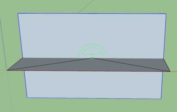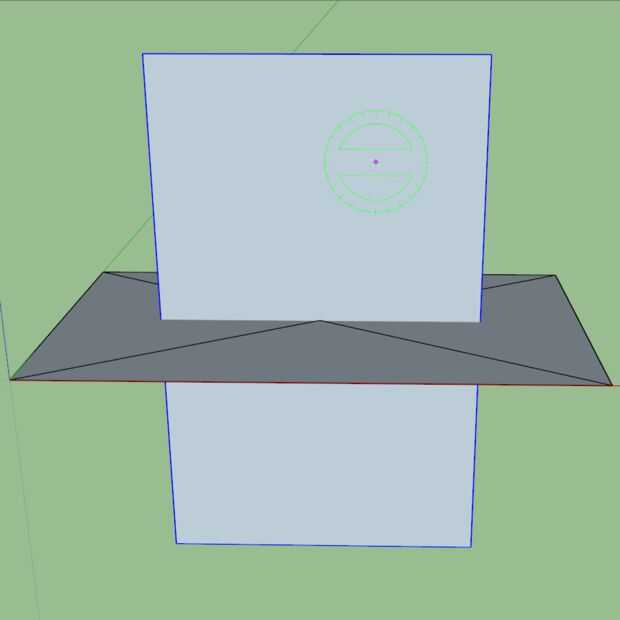 Girar su vista otra vez por lo que busca en el rectángulo en la dirección original. Pulsada la tecla mayúsculas hasta bloqueo de la herramienta de rotación en la orientación verde. Bloquee la herramienta en el centro del rectángulo original. (Esto es más fácil ahora porque la X hemos creado en el componente original.) Rotar el rectángulo de 90 grados.