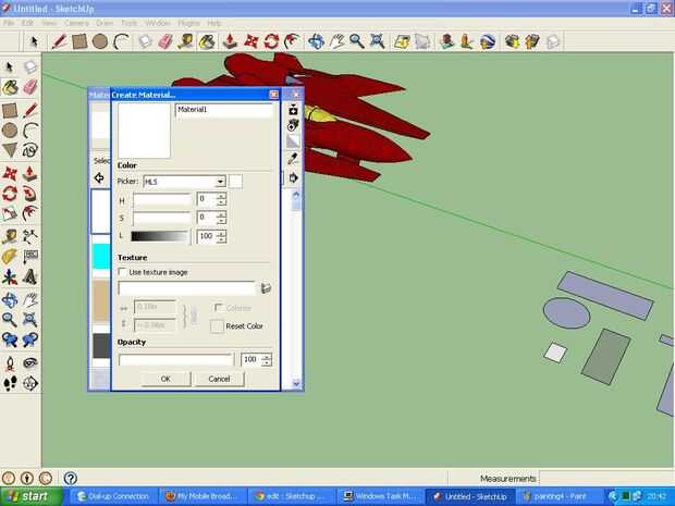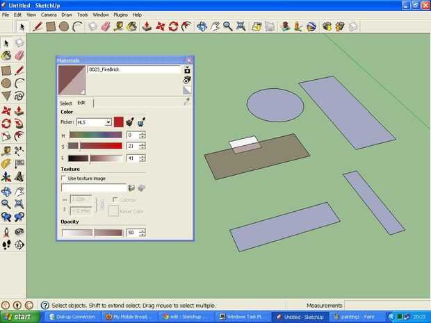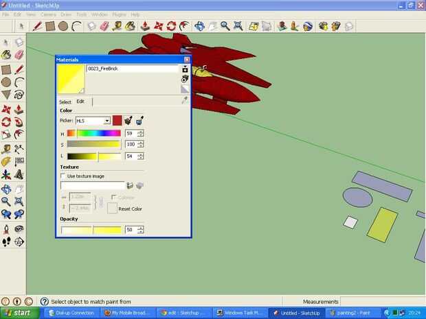 materiales en sketchup permiten superficies de color y añadir texturas a ellos. en su nivel más simple trata simplemente de clic en la herramienta Cubo de pintura y seleccionando un color o textura de las listas haciendo clic en rostro para aplicar el material, si desea modificar las posiciones/orientaciones de texturas describen en el siguiente paso. pero también hay muchas otras opciones. por ejemplo, cualquier material puede ser editado por cambiar su color, esto se hace haciendo clic en la pestaña Editar en la ventana de materiales entonces mover los deslizadores o escribir valores. te aconsejo que para la edición fácil de colores debe selecciona el método de HSL que le resbaladores separados para tono (qué frecuencia de la luz corresponde a (pensé que era la mejor manera de describir a pesar de las diferencias entre la luz y el color)), sombra (cómo gris quiero desde gris a color negrita) y ligereza (lo oscuro del negro al blanco). También hay un control deslizante más hacia abajo para la opacidad que puede ir de 0 (totalmente transparente) a 100 (totalmente opaco). También hay botones que permiten igualar el color de una cara ya en el modelo y el color en un punto determinado de la pantalla. sólo uno de ellos haga clic en el color/la cara que desea copiar. otras herramientas útiles en la ventana de materiales incluyen el icono de inicio que te permite ver los materiales que se producen en el modelo. hay una herramienta sin uso de purga que te permite quitar los materiales que ya no se producen en cualquier lugar en el modelo (aunque los componentes que contienen el material en cuestión deben primero purgar ellos mismos en la ventana de componentes).
