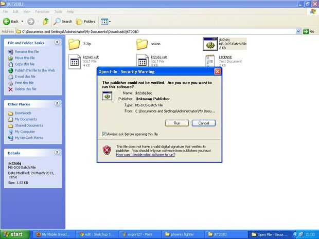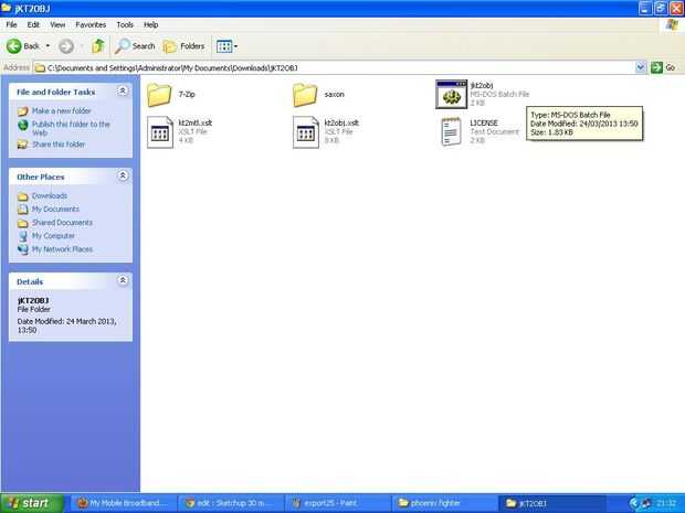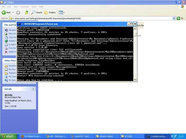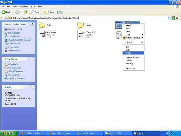 18. Haga clic derecho y luego pegar el archivo XML en el archivo por lotes de ms-dos llamado jkt2obj