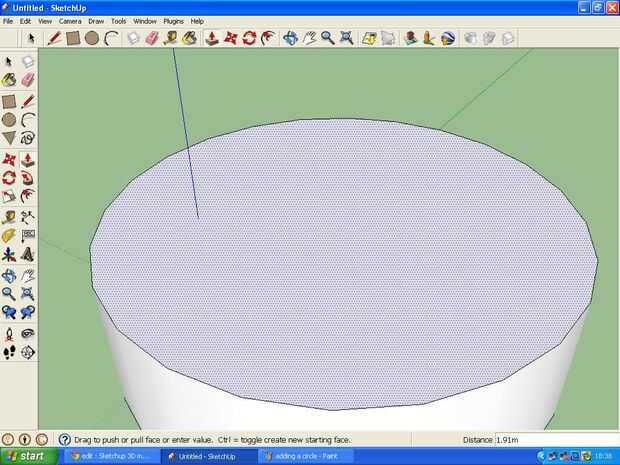 Tenga en cuenta que una característica brillante de sketchup es que con muchas de las herramientas por ejemplo puede seleccionar una superficie a push-pull o un punto de centro donde desee colocar un círculo. entonces después de usted puede cambiar su posición de visión y ángulo y haga clic de nuevo en la misma herramienta que sólo se utiliza, en muchos casos haciendo esto luego permitirá establecer la distancia desde un punto de vista diferente cuando empujar-tirar o establecer el radio de un círculo en un punto no visible en la vista de su centro.