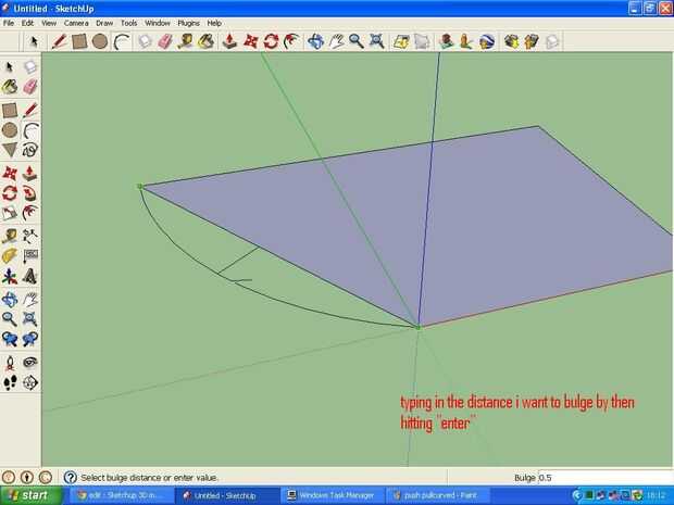 primer tipo en el número de bordes que desea su arco que consisten en, a continuación, haga clic en un punto donde desea que uno de los extremos del arco, luego haga clic en un punto para el segundo extremo del arco. Finalmente mueve el cursor a la posición del punto donde quieras el arco de protrusión, se debe comprobar que eje va a mover este punto a lo largo de como lo va a determinar lo que se convierte en la orientación de su arco. Si el eje es correcto entonces en lugar de hacer clic en un tipo de punto en la longitud que desea protruir por y presione Intro.
