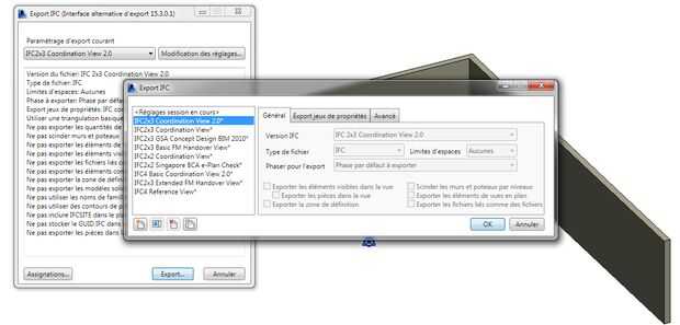 Le créer de Revit IFC archivo y un archivo de registro (+ archivo de paramètres partagé si exportación de ceux-ci dans l'IFC)