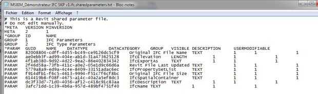 archivo RVT avec le archivo IFC à l'intérieur ainsi qu archivo de paramètres partagé et rapport de un HTML.