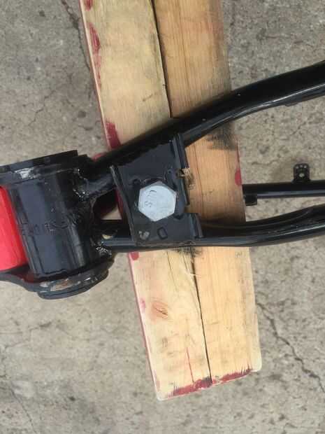 A quick connector for a bike trailer. Para que el remolque se puede cambiar entre distintas motos fácilmente.No engorrosos y mantiene la moto buscando "normal". Mi esposa y yo vivo a dos cuadras de la tienda de comestibles y para poder utilizar