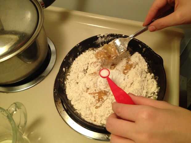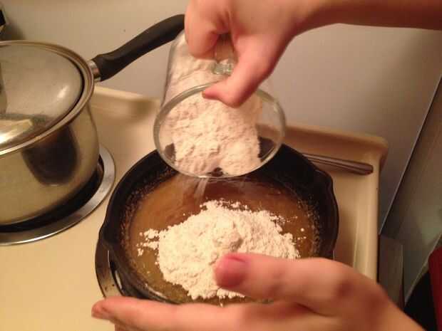 Nota: Tenga cuidado de no derramar alguno de los ingredientes como revuelva en. Trate de añadir la harina poco a poco para evitar que cualquier suciedad.