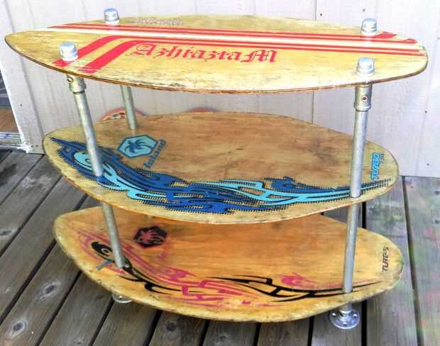 vi el instructable en la fabricación de estantes de (Longboards) y quería algo similar pero fuera usado skim board. Es más pequeño y que tuvimos fue decorado por lo que usé la mitad trasera como obra de arte, por lo que es arte y un estante!Piezas:J