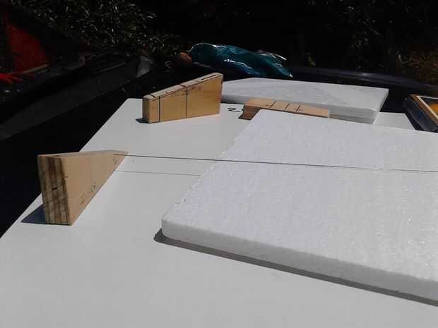 Bloques cónicos de madera, cuidadosamente marcados y recortados se utilizan para establecer el indicador de corte.