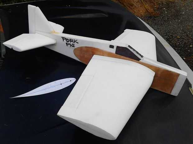 Utilizando los contenedores de pescado que me debe costo de pegamento (Gorilla Grip mezclado con una gota de agua para facilitar la formación de espuma) o aproximadamente $10NZ. Capas laterales son de la parte inferior de una caja encontré y largueros de ala (hay uno en la parte posterior soporte th TP también) son estacas fibra de vidrio de 6mm, no hay dinero ahorrado como usted puede ver...