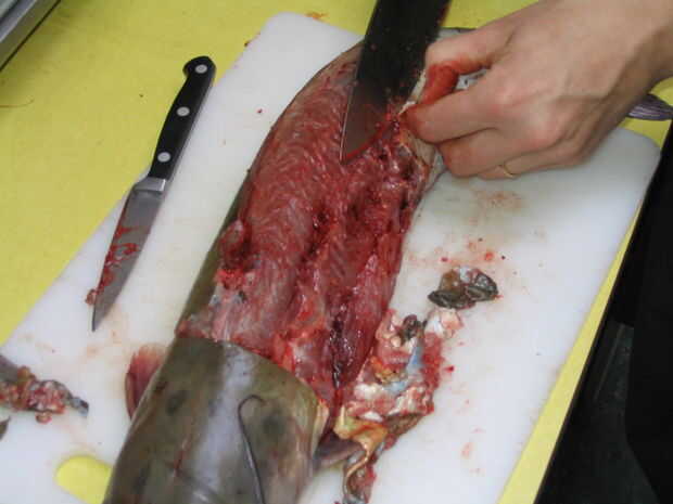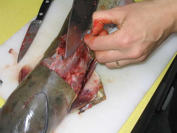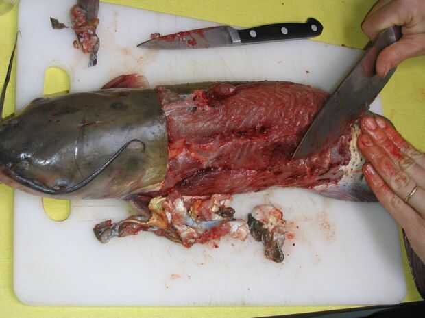 Sugerencia: en vez de intentar cortar la piel del bagre, como cortar el pescado de su esquí; desea dejar tanta carne como sea posible en el cuerpo de los peces.