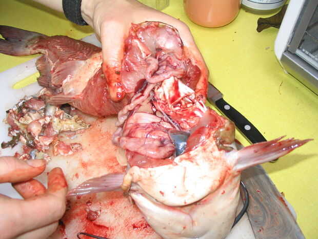 ¿Qué hacer con la cabeza y tripas? Puede enterrarlos debajo de algunas plantas que merecen en su patio, aunque no se olvide de excavar lo suficientemente profundo para mantener mapaches de desenterrarlos. Si usted vive cerca de un océano apropiado, puede utilizar las cabezas de sus trampas de cangrejo de cebo. Menos las agallas de sabor amargo y lavado de tripas residual, las cabezas pueden utilizarse en la fabricación de peces stock. Congelar la cabeza en una bolsa de fecha (limpia y preparada) hasta que luego estarás listo para hacer caldo.