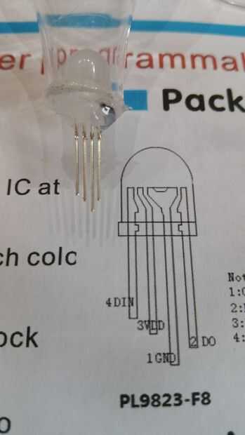 Los LEDs son muy fáciles de entender y usar, simplemente encadenada, el lado plano del LED es datos hacia fuera (DO), el lado opuesto es datos en (DIN). Es un caso de conexión en serie: