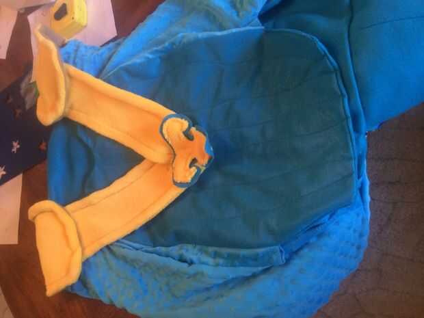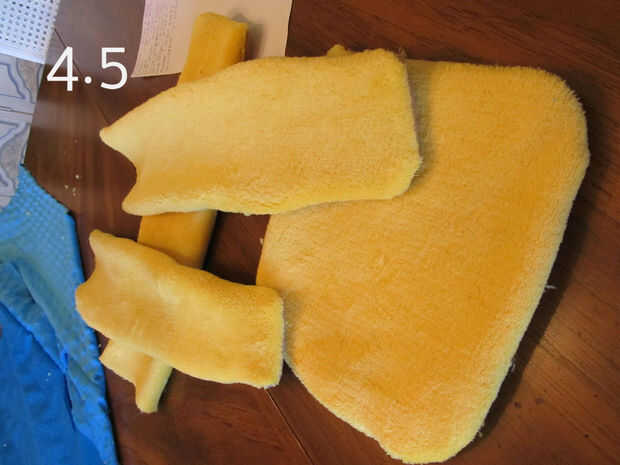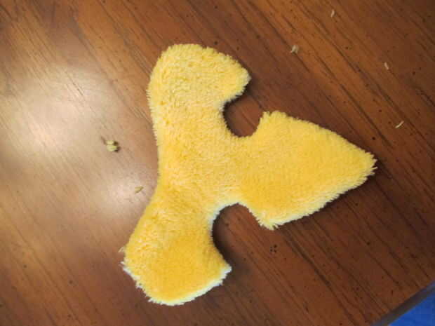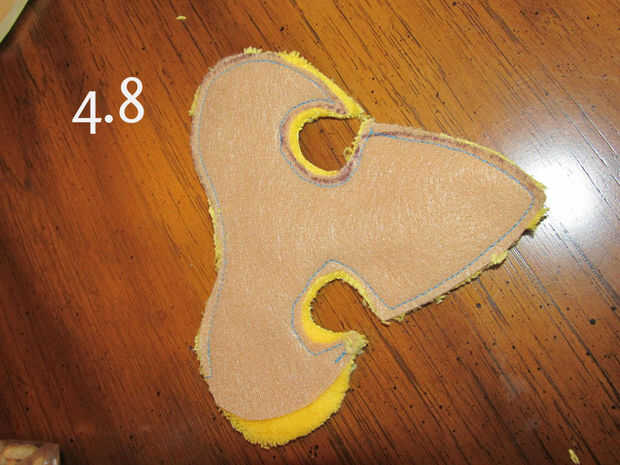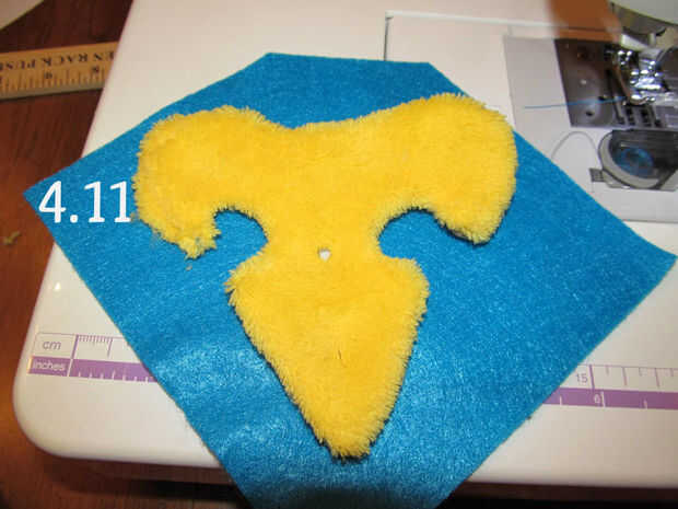 7. Coloque la Fluer de Lis encima de tela amarilla y pin en su lugar.