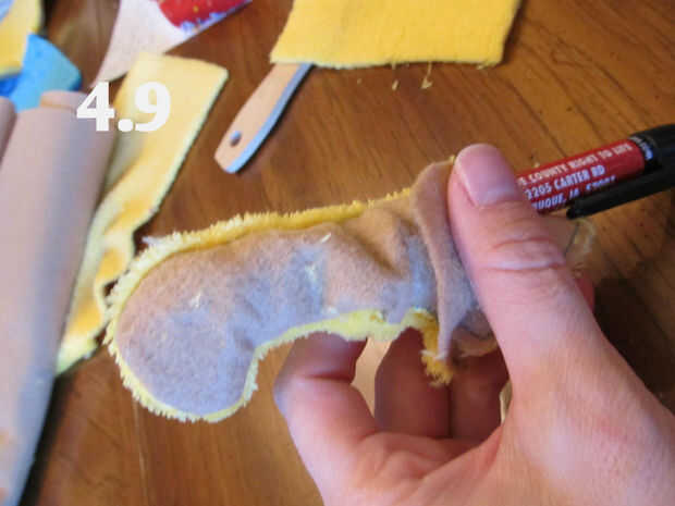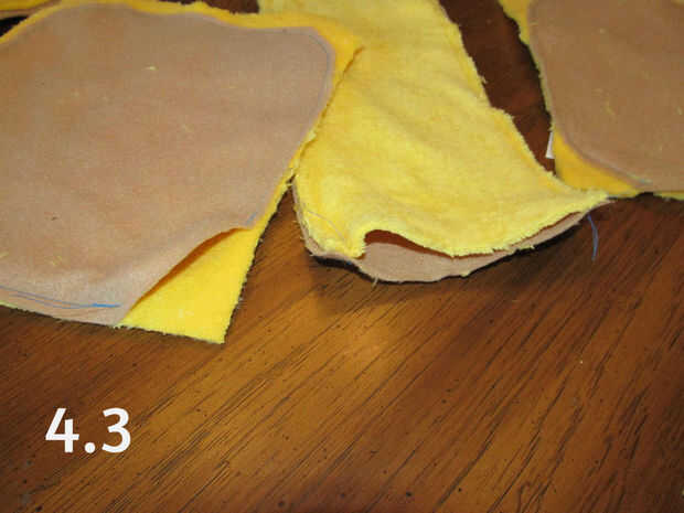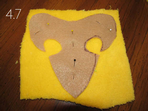 2. Coloque el cooresponding patrones difusos amarillo sobre el fieltro marrón y el pin en su lugar.