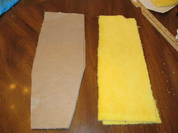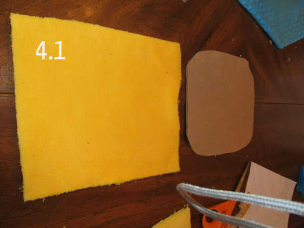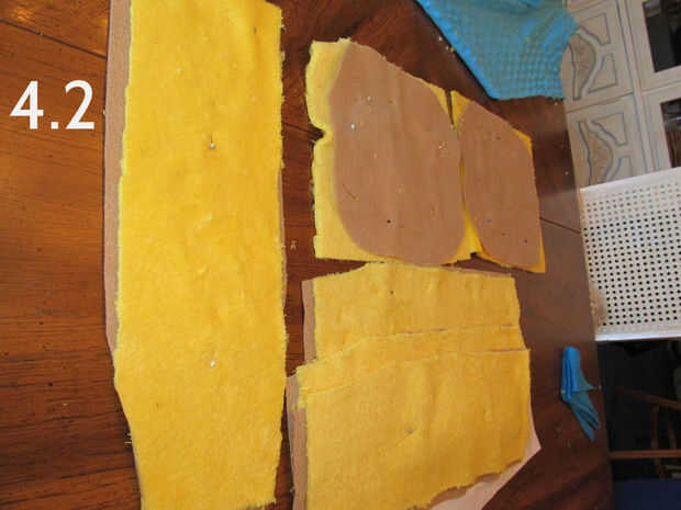 1. Coloque los cuatro marrón fieltro armadura tiras y dos marrón fieltro hombreras planas.