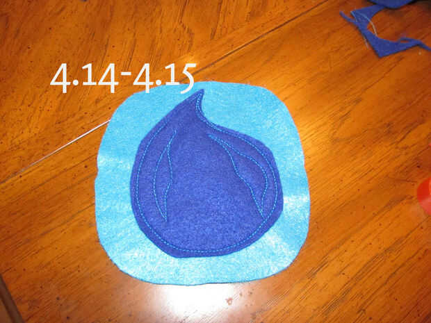 11. prender su acabado Fluer de Lis sobre fieltro azul aqua y prender.