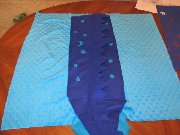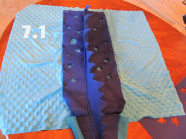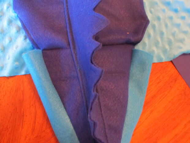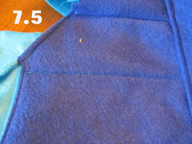 5. stich horizontially en el lado derecho e izquierdo del azul de fieltro paquete de luz, en el extremo de la base de Aqua siente luz Pack (no el cocodrilo placas abajo de stich. Comienzan y terminan las líneas de stich en las placas en ambos lados).