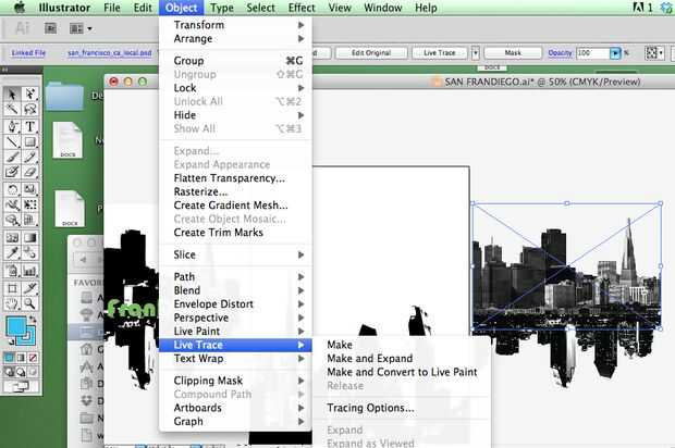 Este instructable le mostrará cómo combinar las siluetas de dos o más ciudades en Illustrator con la herramienta de hacer y convertir a pintura interactiva .