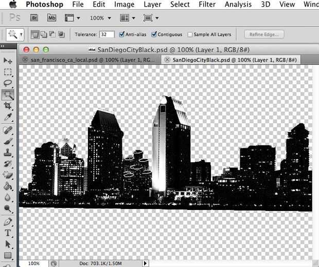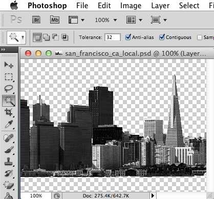 Comience abriendo el archivo en Photoshop. Ahora utilice el lazo y Varita Magin herramientas para seleccionar y borrar el ares de la imagen que no quiere calco. Para este proyecto he borrado el cielo y bahías en las fotos.