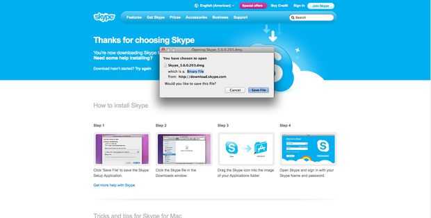 Paso 5: una vez que termine, este mensaje va a aparecer, haga clic en guardar archivo y Skype se descargará automáticamente en su ordenador.