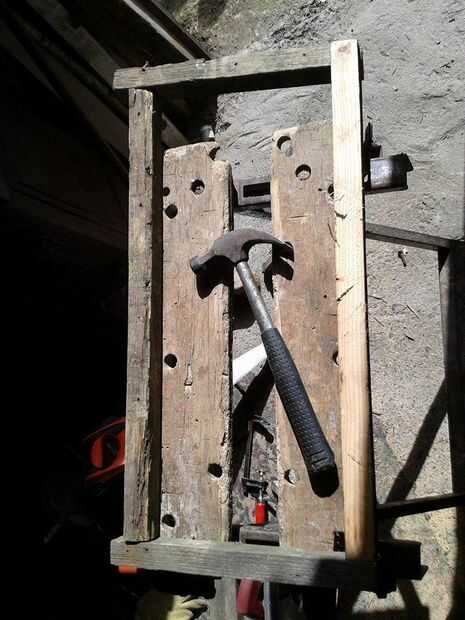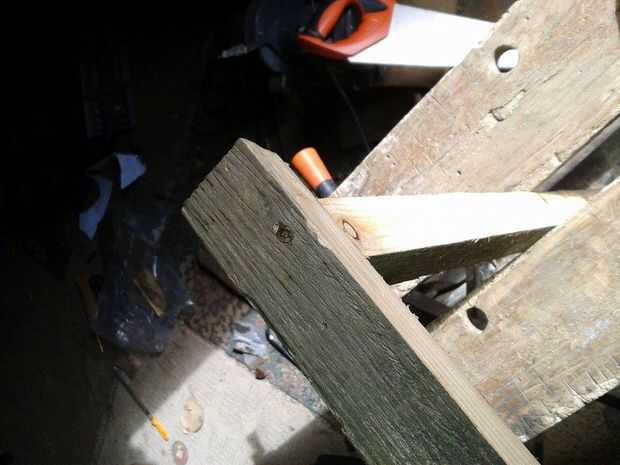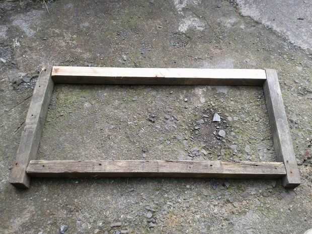 Con los clavos y el martillo, asegure todo para formar la base. Debería verse como un marco de piso con el exceso en la cara de la rejilla. Una vez que esté seguro y sólido es el momento para el siguiente paso.