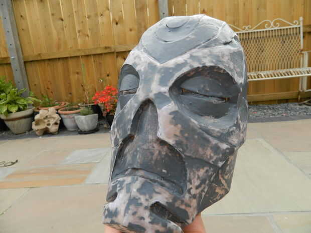 Este es probablemente el paso más desperdiciador de tiempo. Lije todas las pequeñas imperfecciones hasta que el modelo se ve liso. Cabe destacar que la máscara en el juego está llena de virutas y de cicatrices de batalla, pero quería mía para ver un poco más prístina. Si usted es como yo y quiere que todo sea perfecto entonces Prepárate para comer cubos de polvo y arena hasta dejar los brazos. Hablando en serio, usted debe usar una máscara y gafas.