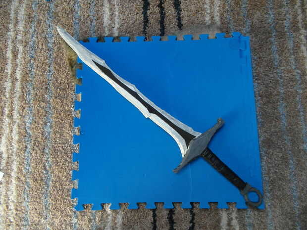 Prop para mi cosplay en progreso, armadura completa de Daédrico. Obviamente se trata de la espada. Está hecho principalmente de madera que forma utilizando un grueso archivo, lijadora de Palma, herramienta rotatoria y acabada con papel de lija. Despu