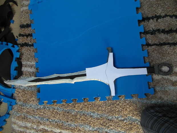 Ok por lo que ves en mis fotos estoy usando papel de tamaño A4, quiere hacer es mover la imagen a lo largo y dibuja hacia fuera en diferentes pedazos de papel y pegarlas con cinta adhesiva para que tengas una versión en papel de tu espada. Todo cortado y luego colóquelo sobre su espuma. también debo mencionar que la hoja hecho encajaba en los azulejos de espuma que utilizaba así que hice la empuñadura y la hoja separada!  La empuñadura es de dos piezas de espuma gruesa! Trazar alrededor de la plantilla de papel y dale la vuelta para hacer el otro lado de la empuñadura. Una vez hecho esto luego puede recortar la lámina.