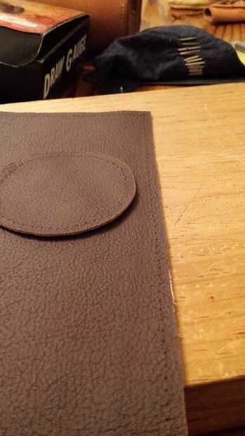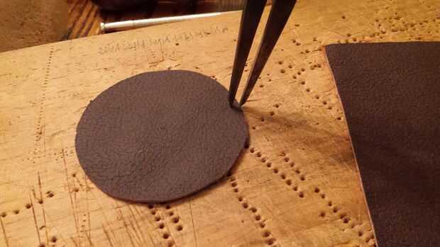 Luego usé el mismo espaciado para empezar marcando el espacio para los agujeros de mi brújula hacia abajo la piel de "caminando". Mediante la aplicación de presión pude hacer algunas buenas notas fuertes que utilizaba como mi guía para perforar los agujeros hacia fuera.