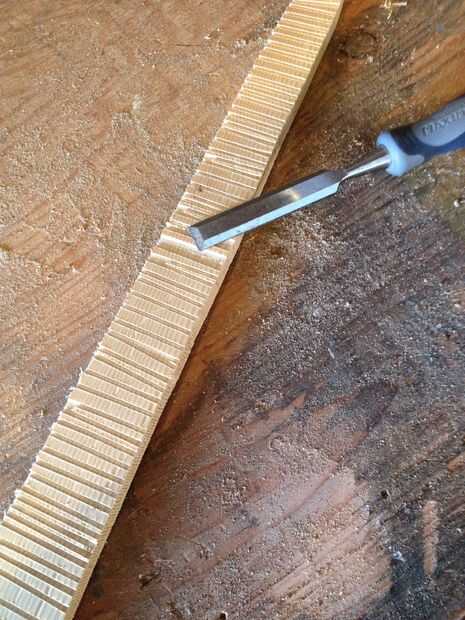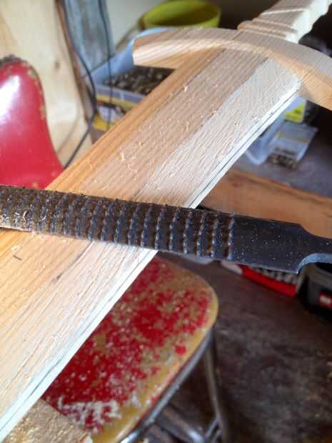 Tiempo para tallar pacientemente y todos los detalles de la forma. He utilizado archivos sobre todo de la mano y cinceles y un poco de la sierra. Luego lijar todo a mano, con grano 60 y terminado con 220.