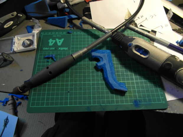 Una vez que las cuchillas estén hechas y sacado el polvo puede pegarse a la manija usando pegamento caliente.