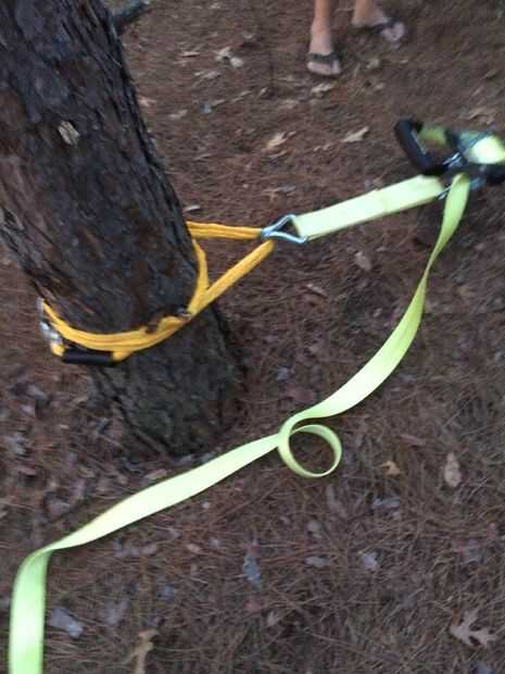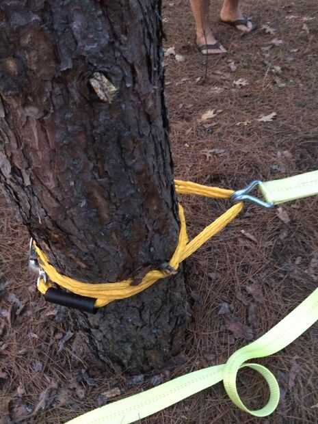 Lo más importante es conseguir dos árboles una buena distancia aparte que son lo suficientemente fuertes como para sostener el slackline. Una vez que los árboles seleccionados Inicio envolviendo una de las correas de remolque alrededor del árbol. Para ello aproximadamente 1 pie del suelo. Determinará la altura de la línea floja. Envuélvalo alrededor de tantas veces como puedan y luego enganche el clip de dos juntos. Entonces estire la parte de cuerda para que el gancho está apretado y tiene un área para enganchar la correa de trinquete en la parte de cuerda. Luego en el otro árbol previamente seleccionado lo mismo envolviendo el remolque de la cuerda alrededor del árbol y enganchar las pinzas y tirando firmemente un punto sobre la cuerda parte para enganchar el otro extremo de la correa de trinquete.