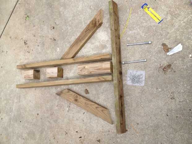 2 x 4 x 16-2 para los soportes diagonales. -Realmente no sé cuánto duran. Sólo les corte a donde encajan.