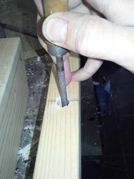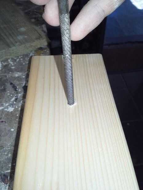 Utilice una lima para limpiar los agujeros que ha perforado a, armar los stands y vaya al paso siguiente.