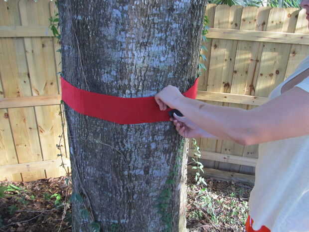 Obtener a algún tipo de protección de árboles antes de colgar la línea. Si compraste un kit de slacklining, la protección del árbol incluido será probablemente un par de largas tiras de fieltro. Toallas, cartón o alfombras también trabajo. El objetivo principal de la protección del árbol es mantener la tensión del slackline de dañar la corteza del árbol. Si eres slacklining en un parque público, la policía de rangers apreciarán esto...