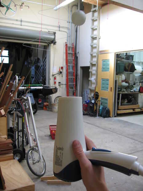 Practicar con mantener la bola y moviendo el secador alrededor. Puede enchufar el secador de pelo en un cable de extensión para que usted pueda ser más móvil.