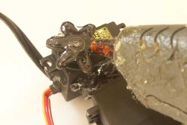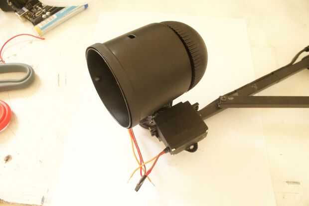 4. Vierta un poco de pegamento caliente en la cabeza de servos y mantenga la cabeza de la lámpara en la parte superior.