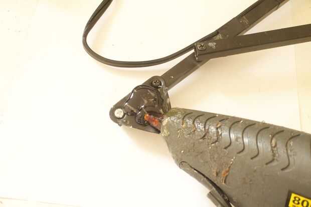 2. aplica pegamento caliente a la placa de los titulares de la cabeza de lámpara.