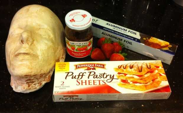base en forma de cabeza de horno (utilicé un molde de yeso de la cara de scoochmaroo, pero también puede usar bolas de papel o papel de alagodón-para arriba, la parte inferior de un molde para pasteles con forma de cara, o cualquier cosa más o menos oval (una calabaza, un tazón de fuente) con una forma de la nariz unida).