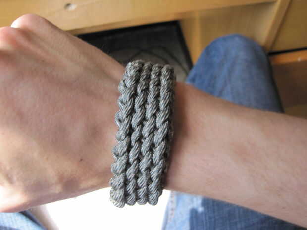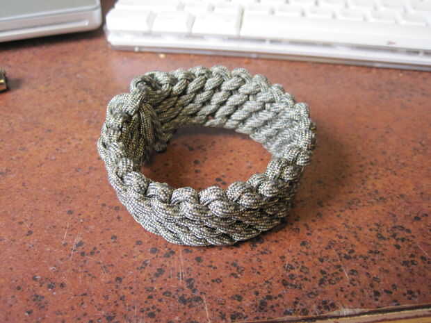 me encanta paracord, tanto por sus innumerables usos y el hecho que se ve genial cuando tejen en pulseras, cinturones, correas, etc.. Trabajo entre bastidores y estoy siempre en busca de una buena manera de llevar una gran cantidad de cable sobre mí que se puede acceder fácilmente. Encontré la correa de rescate Slatts y decidido ver si podía tejer uno en sí mismo sin utilizar una hebilla. Los resultados vinieron a ser una pulsera de aspecto agradable que puede ser deshecha en cuestión de segundos.